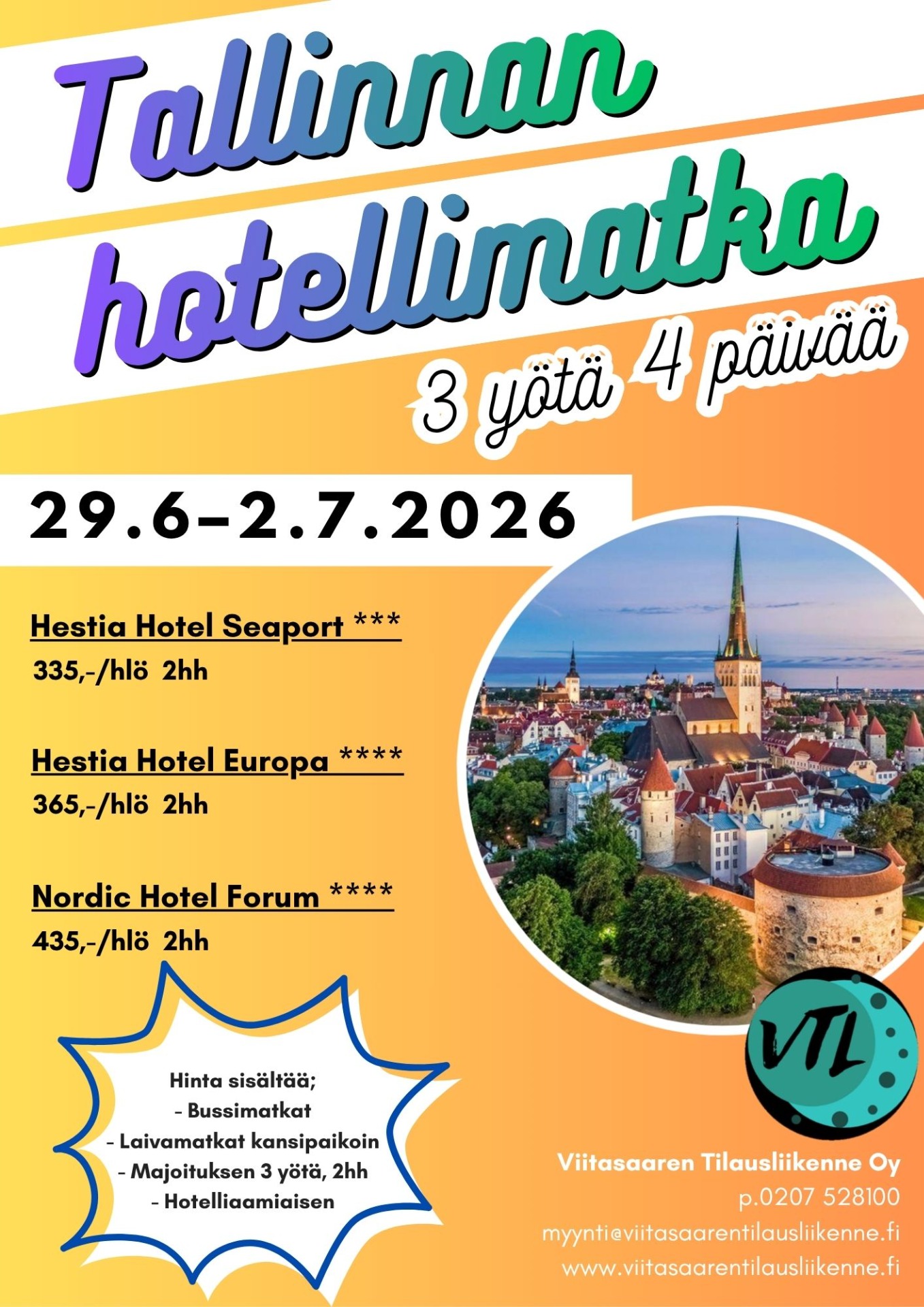 Tallinnan hotellimatka 29.6.–2.7.2026
